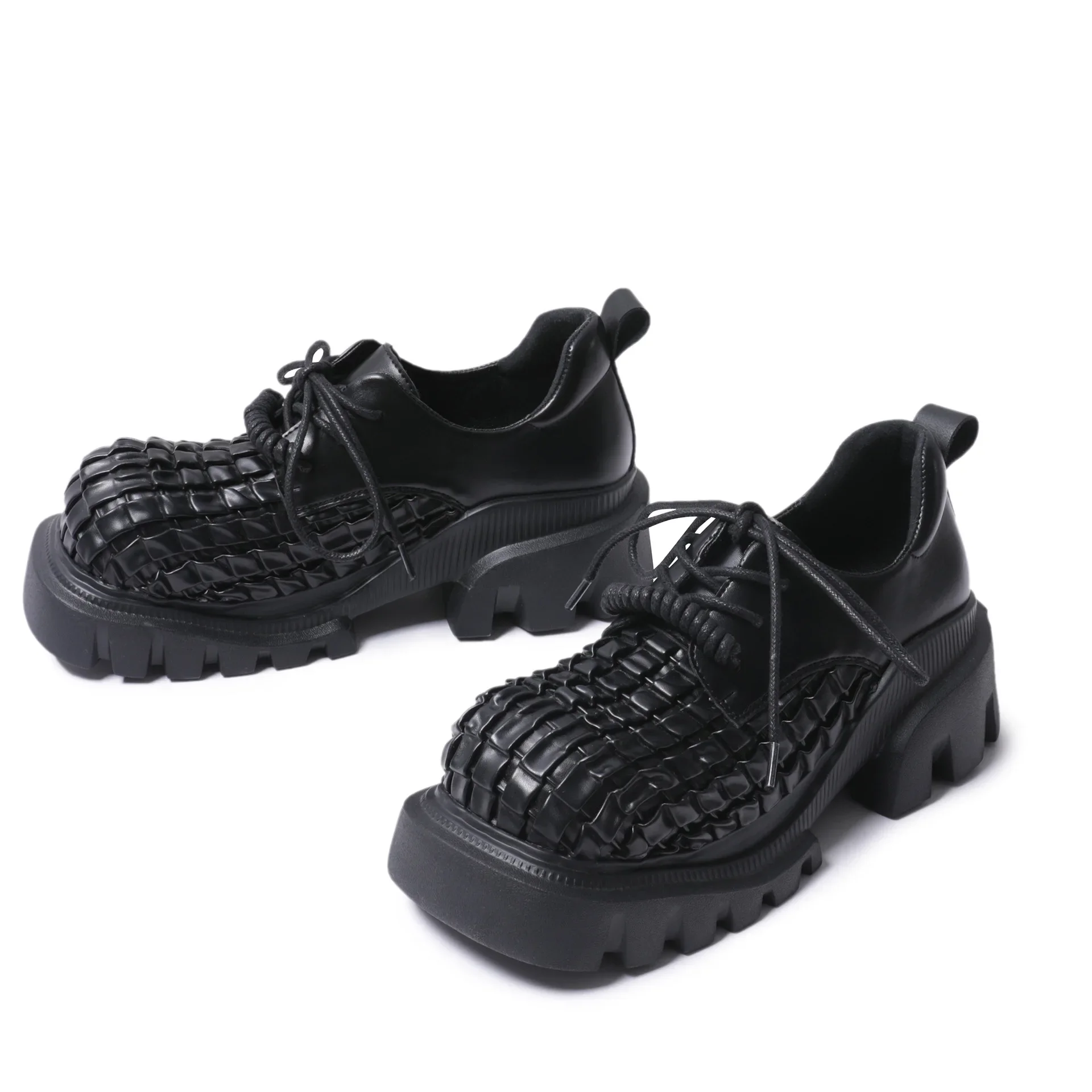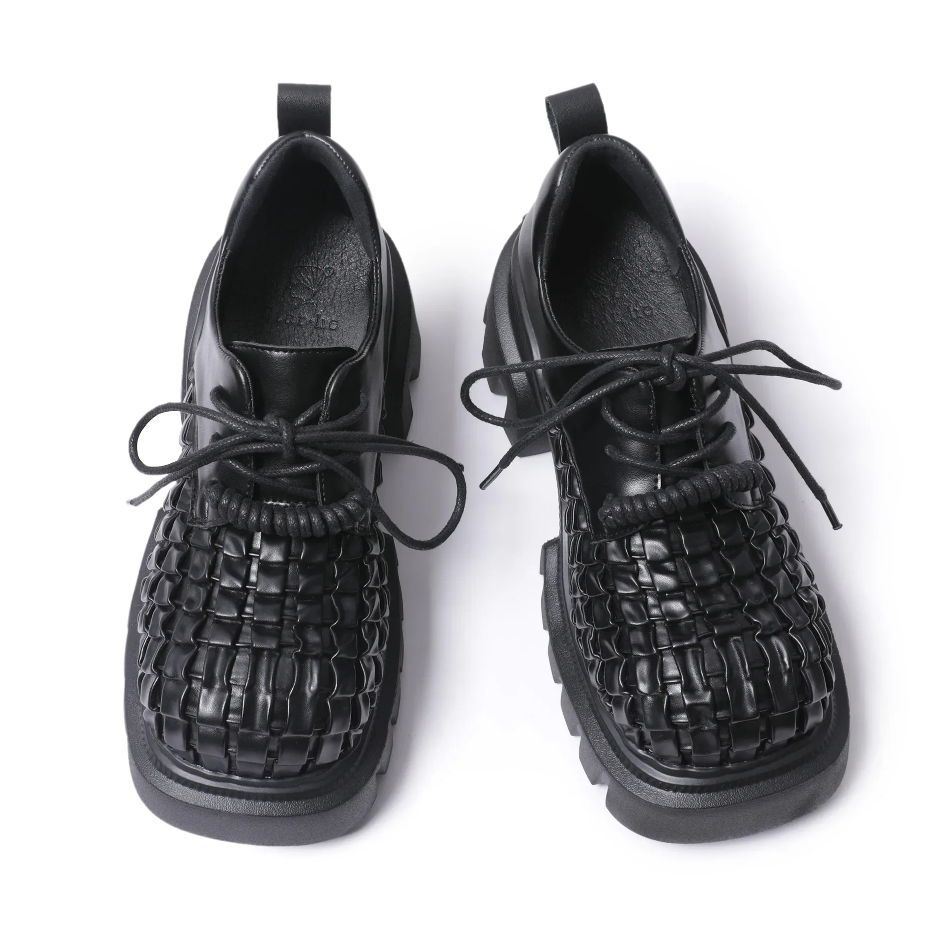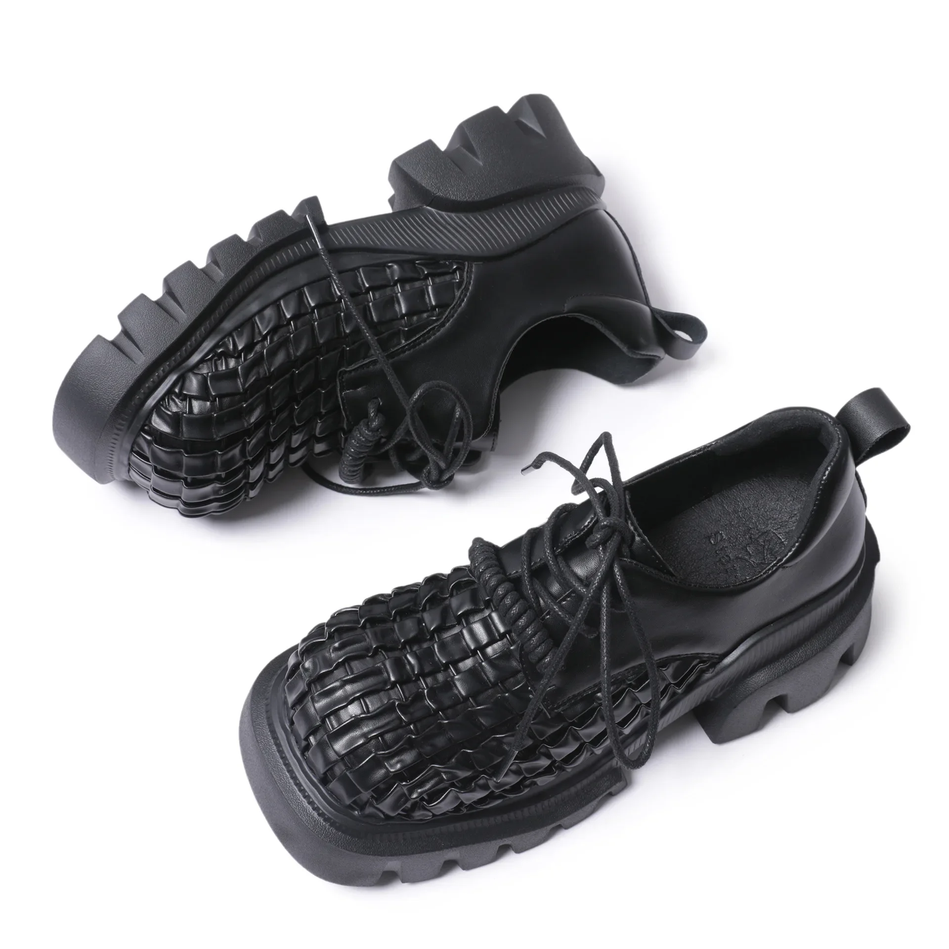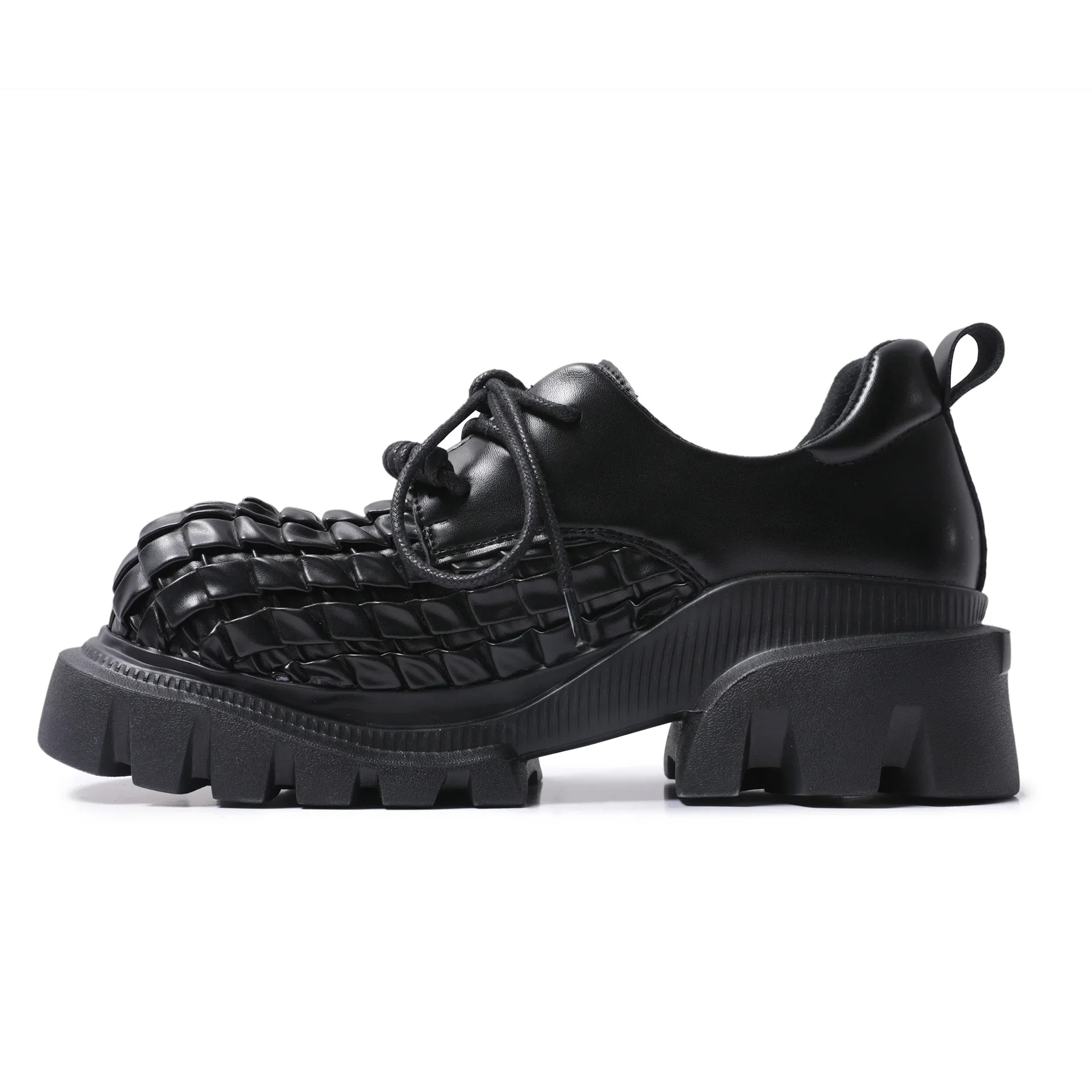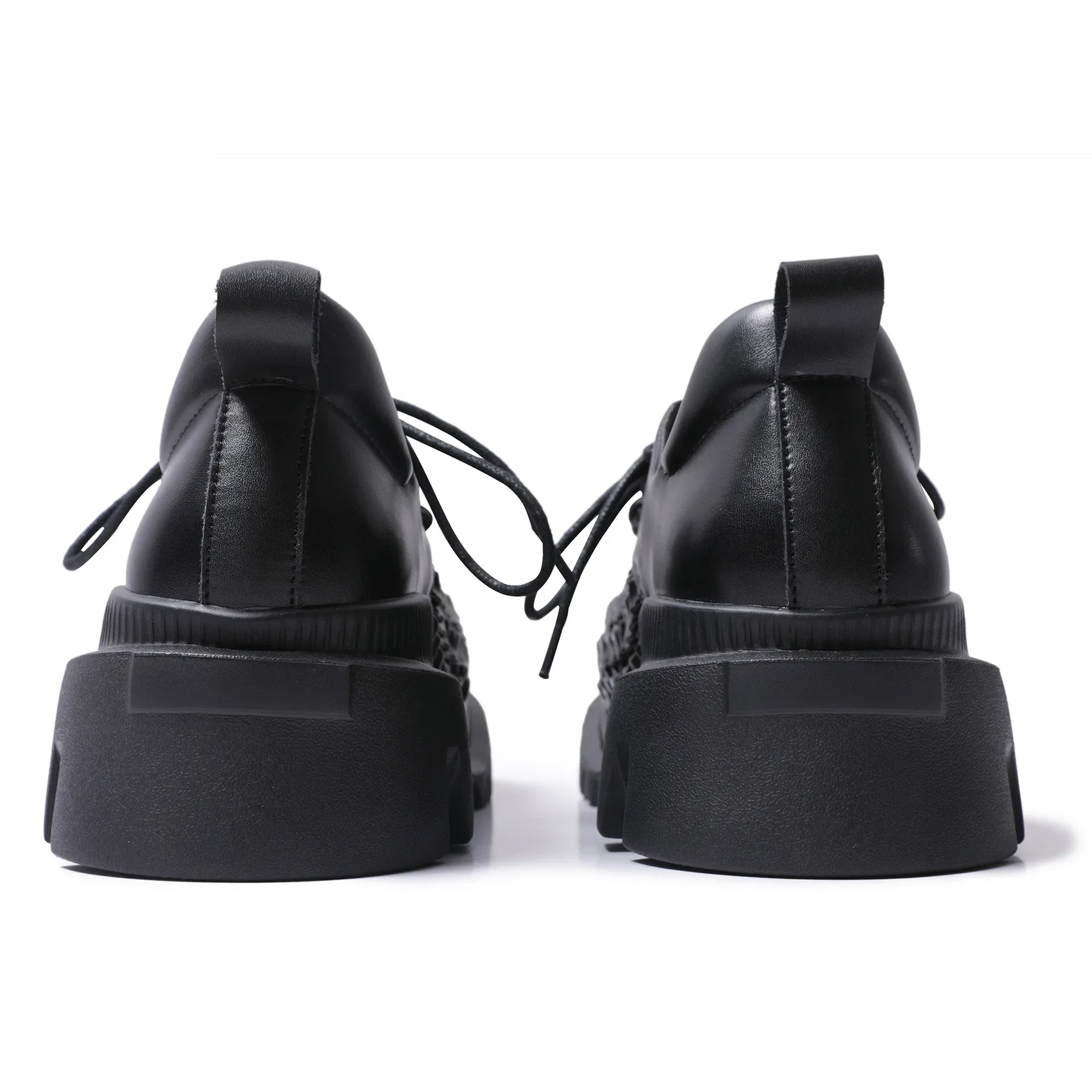 Chunky lace-up shoes with a black PU leather upper and a lug sole for everyday style.