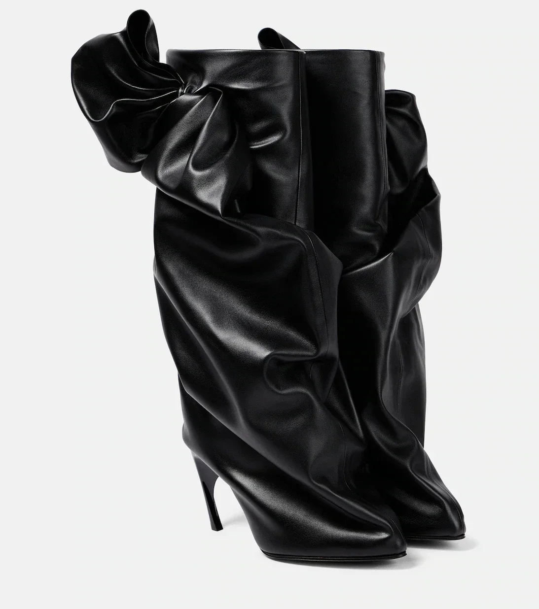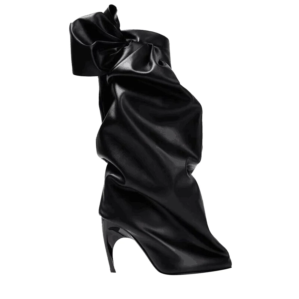Black over-the-knee boots with a PU leather upper, pointed toe and a tall, stable heel.